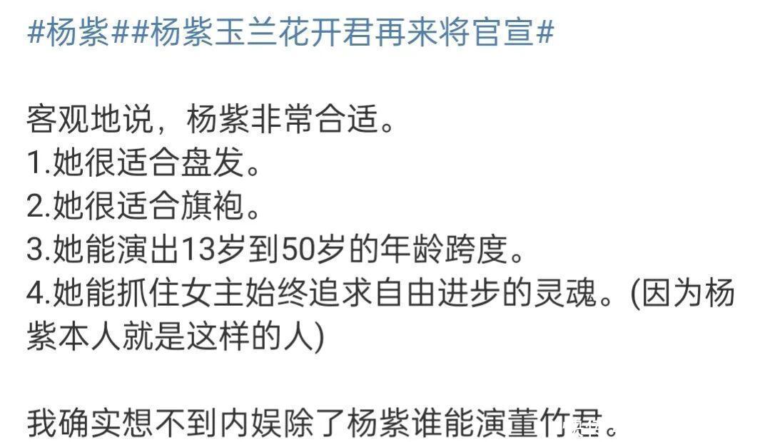对了,新剧男主还没定呢,黄轩、王阳、朱亚文都传过,最近又说可能是李泽锋,到底是谁还得等官宣。明年杨紫有《家业》《生命树》《玉兰花开君再来》三部剧要播,真挺期待她这次能带来啥不一样的感觉!